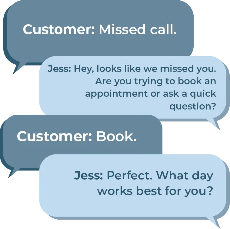 Jess takes care of the calls, the texts, and the scheduling — so you can stay focused on